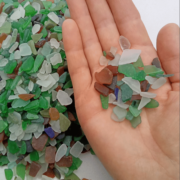 100 pieces of super tiny sea glass mostly in green, white and brown colors. Other colors are rare. All sea glass was collected on the coasts of Adriatic Sea. It is naturally formed, mostly from broken bottles lost in the sea in the past.